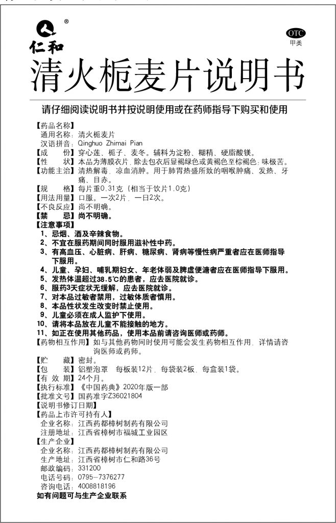 清熱解毒,涼血消腫。用于肺胃熱盛所致的咽喉腫痛、發熱、牙痛、目赤。