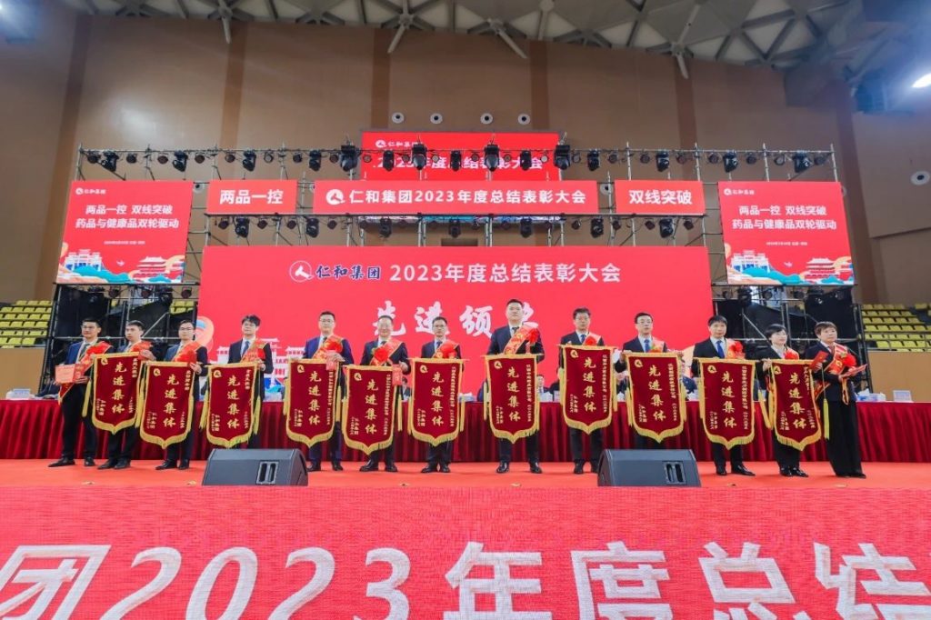 2024年2月19日上午,仁和在樟樹市體育館隆重召開2023年度總結表彰大會,樟樹市市委領導、董事會成員、各戰線營銷將士等員工代表3700余人出席會議,大會隆重宣布了《關于表彰2023年度先進集體、個人的決定》,中進藥業被評選為“先進集體”,公司總經理李圳被授予“總裁特別獎”榮譽。此殊榮展現了中進藥業緊跟公司發展步伐、創新創造,承擔更大責任與使命的精神風貌??偨浝砝钲讷@獎后進行了發言并表示,中進藥業絕不會沉醉在鮮花和掌聲中,而是以實際行動再造仁和中進鐵軍新輝煌,努力發揮先進集體的帶頭作用!