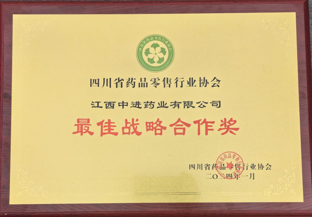 四川省藥品零售行業(yè)協(xié)會(huì)最佳戰(zhàn)略合作獎(jiǎng)(2024年) 發(fā)布時(shí)間: 2024年01月15日 11:19:17 閱讀量: 四川省藥品零售行業(yè)協(xié)會(huì)最佳戰(zhàn)略合作獎(jiǎng)(2024年) 下一篇:江西中進(jìn)藥業(yè)有限公司1月招聘信息上一篇:中國(guó)醫(yī)藥物資協(xié)會(huì)“零售藥店賦能分會(huì)執(zhí)行秘書長(zhǎng)單位”(2024年)