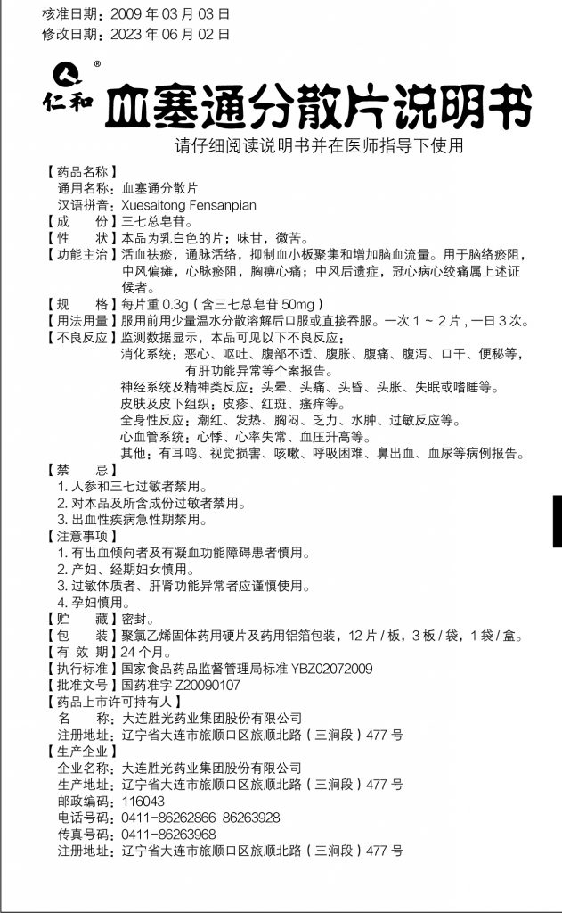 活血祛瘀,通脈活絡,抑制血小板聚集和增加腦血流量。用于腦絡瘀阻,中風偏癱,心脈瘀阻,胸痹心痛;中風后遺癥,冠心病心絞痛屬上述證候者。