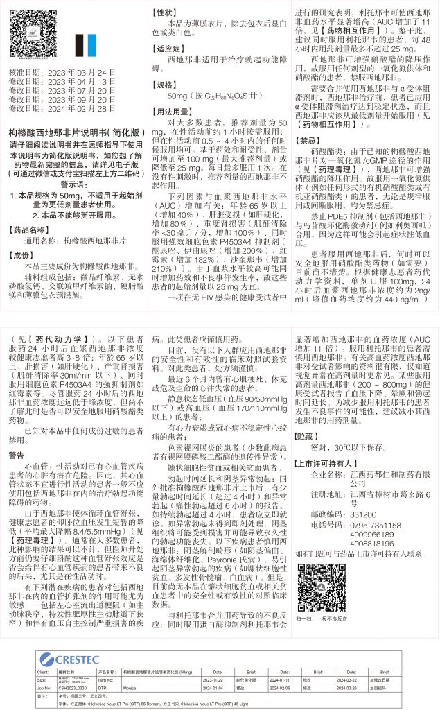 枸櫞酸西地那非片50mg/片 *3片/板*1板/盒