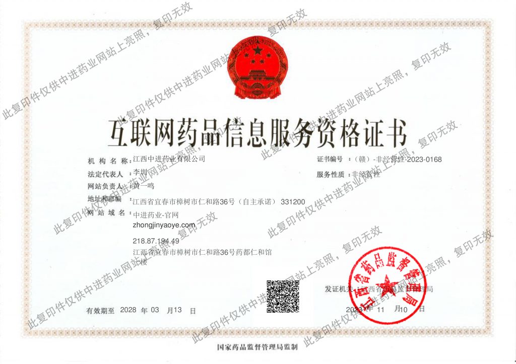 互聯網藥品信息服務資格證書:(贛)-非經營性-2018-0006