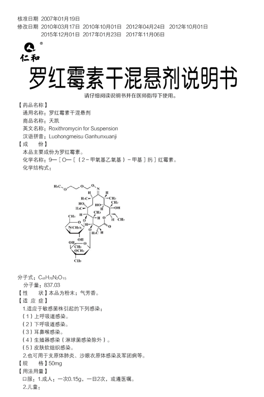 羅紅霉素干混懸劑