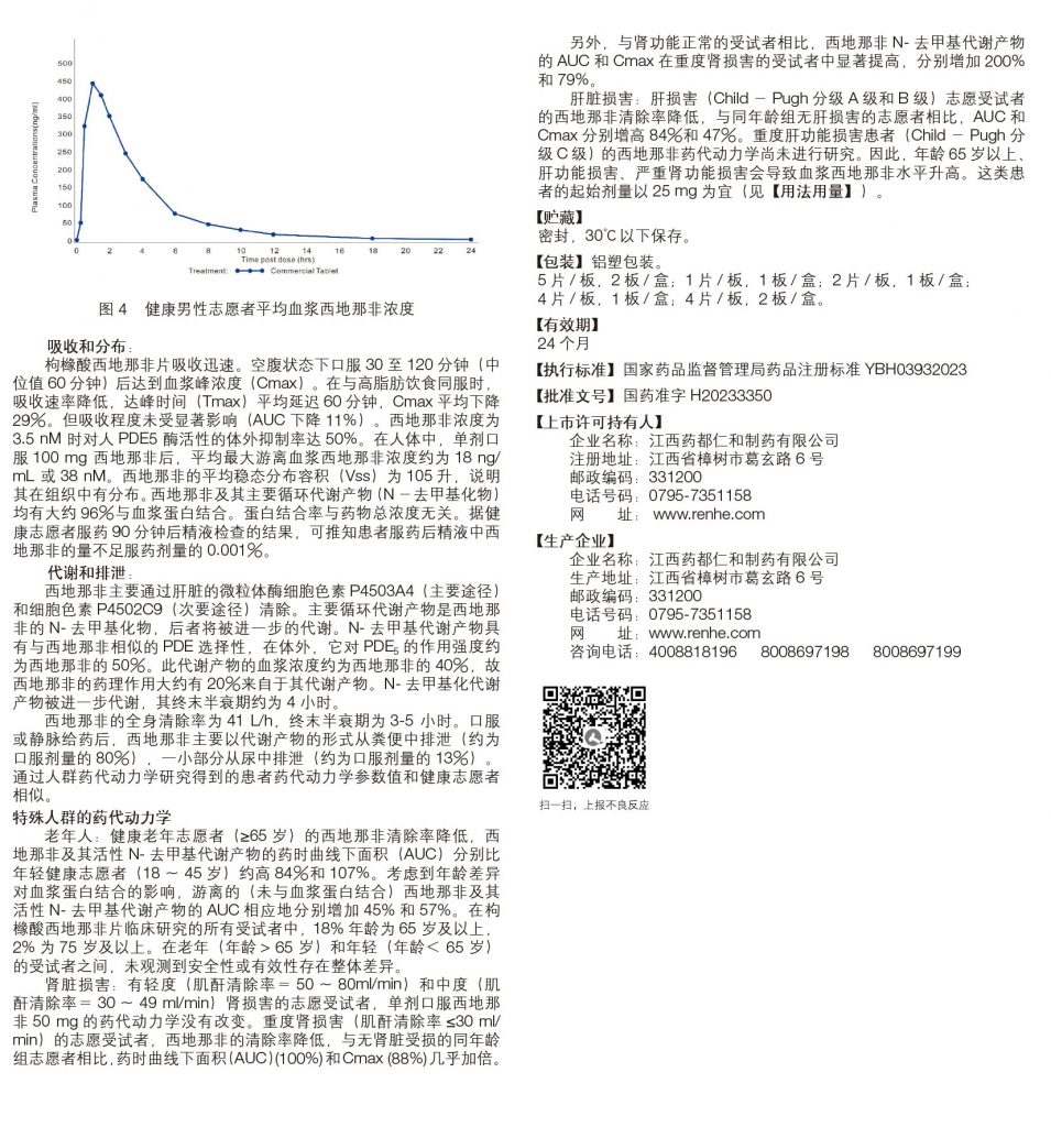 枸櫞酸西地那非片(100mg/片 *5片/板*1板/盒)