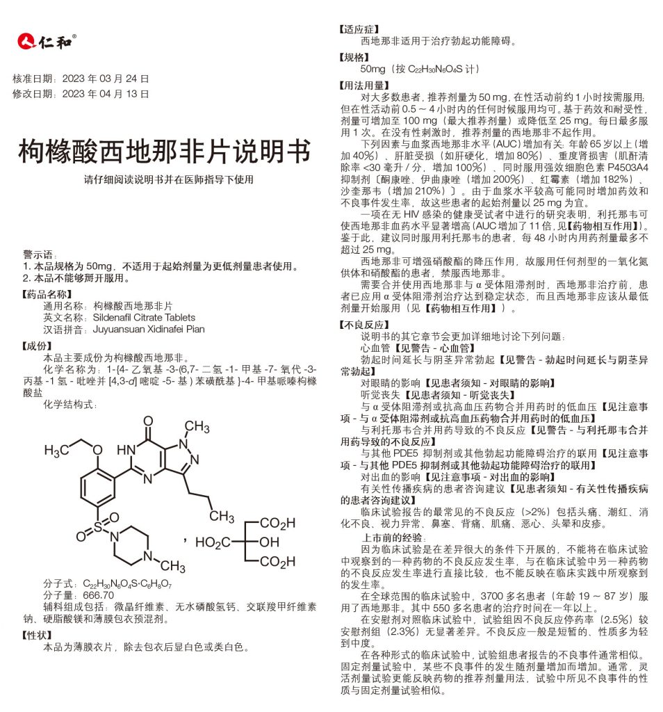 枸櫞酸西地那非片(50mg/片 *5片/板*2板/盒)