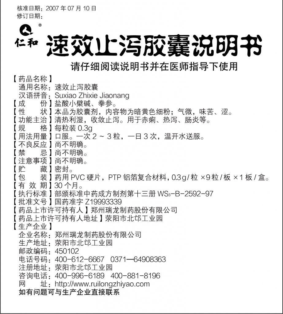清熱利濕,收斂止瀉。用于赤痢、熱瀉、腸炎等。[規格]每粒裝0.3g(含鹽酸小檗堿120mg)